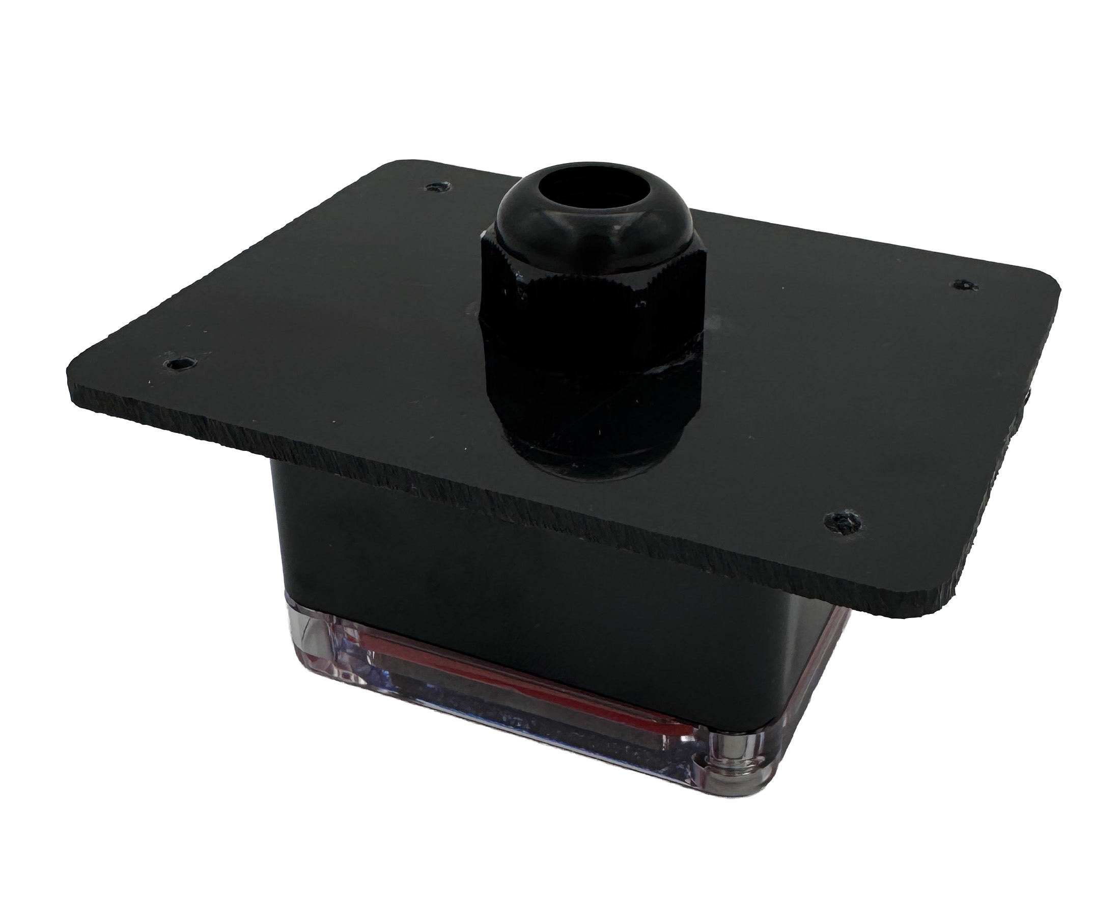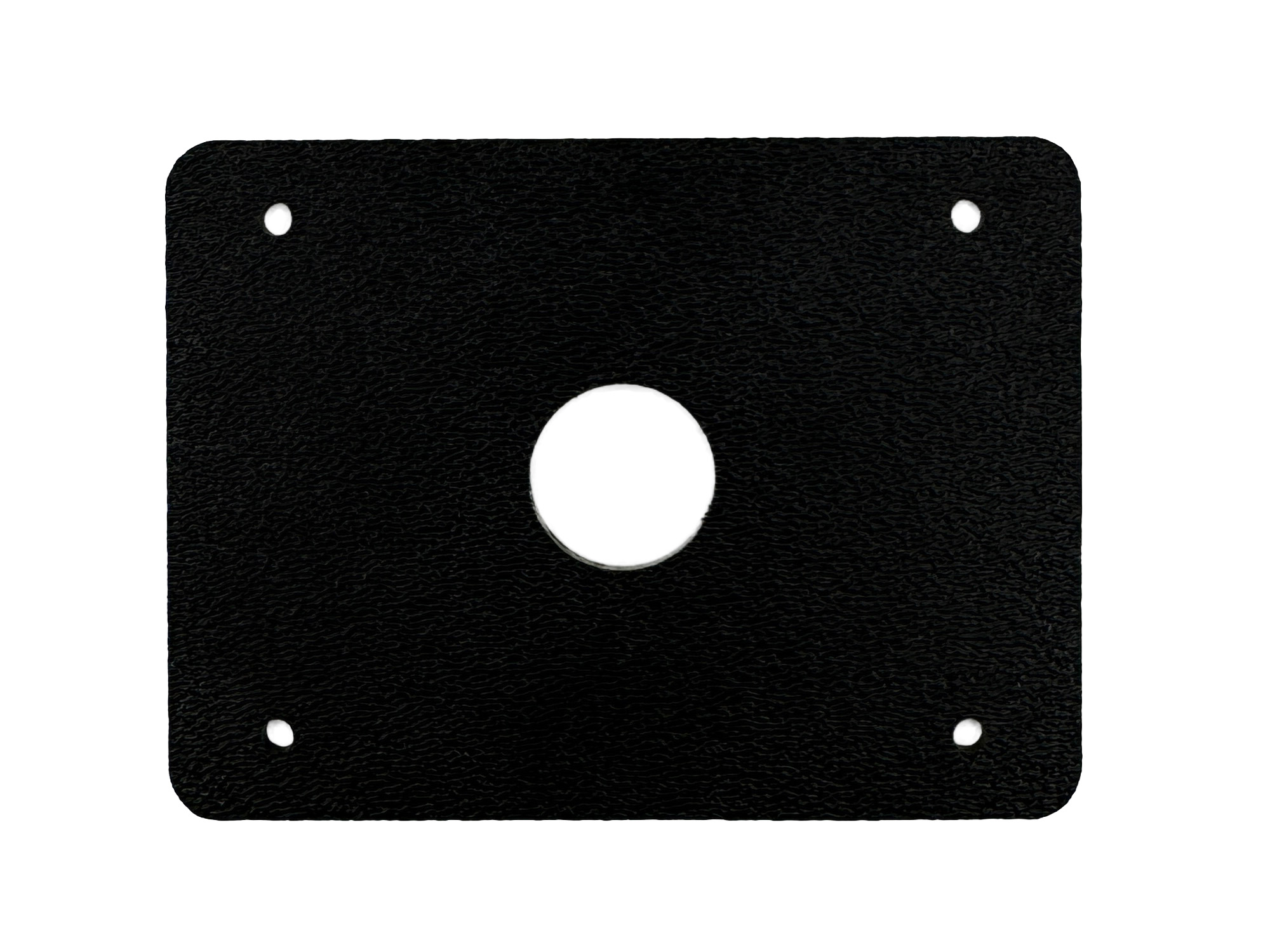 • The flush mount plate measures 4.0 inches by 3.0 inches and is 0.125 inches think and made from black textured ABS plastic