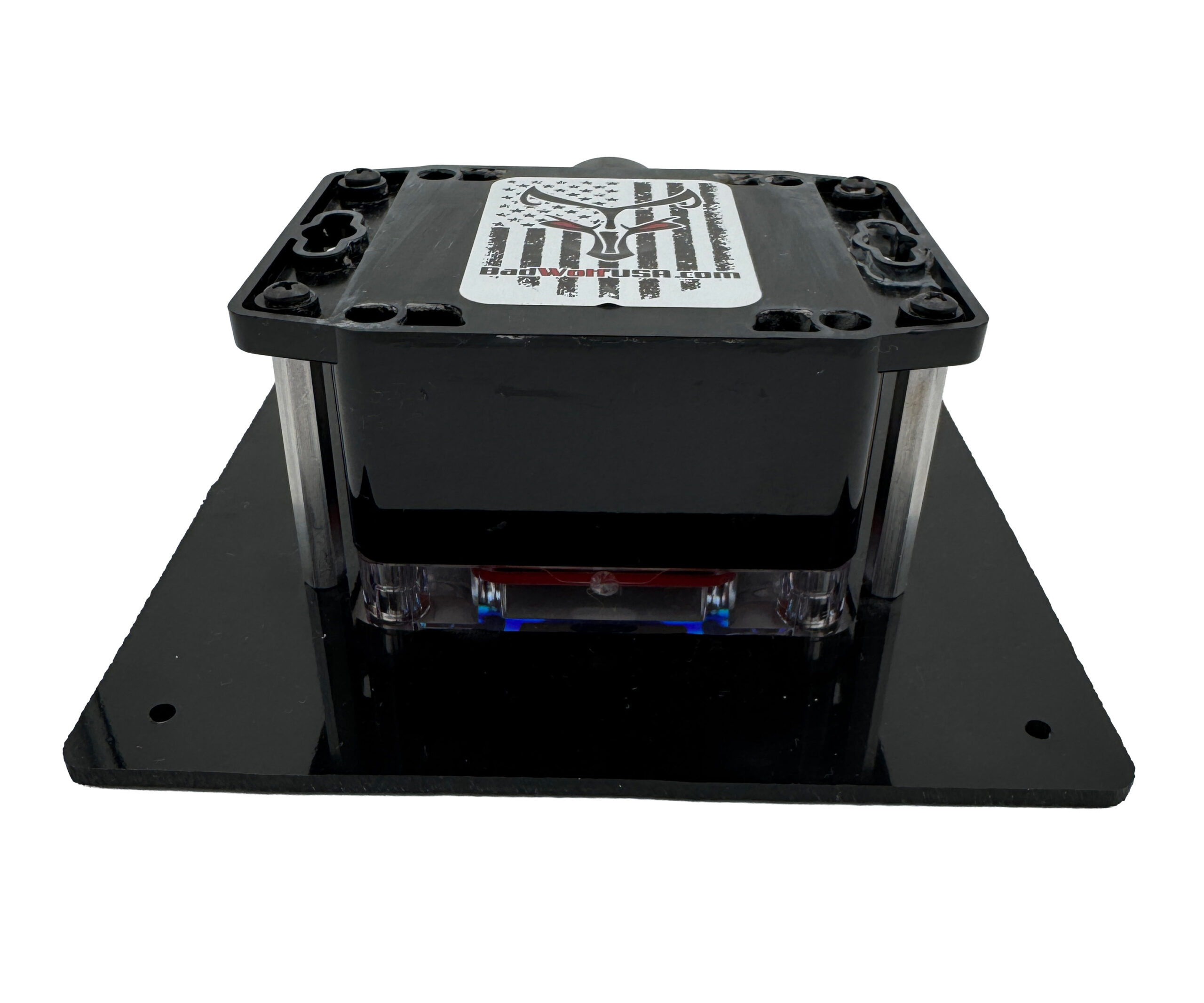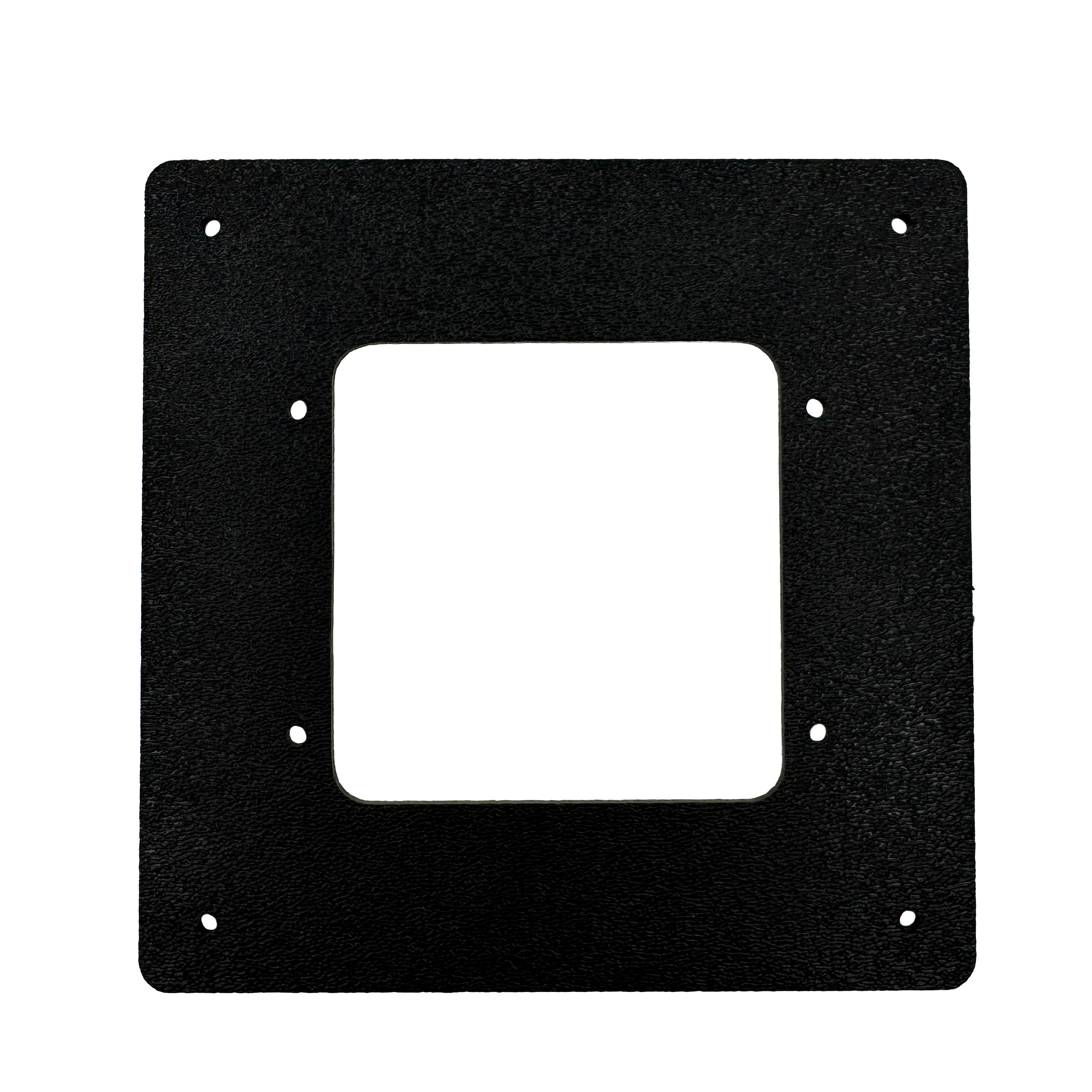• The flush mount plate measures 6.0 inches by 6.0 inches and is 0.125 inches think and made from black textured ABS plastic