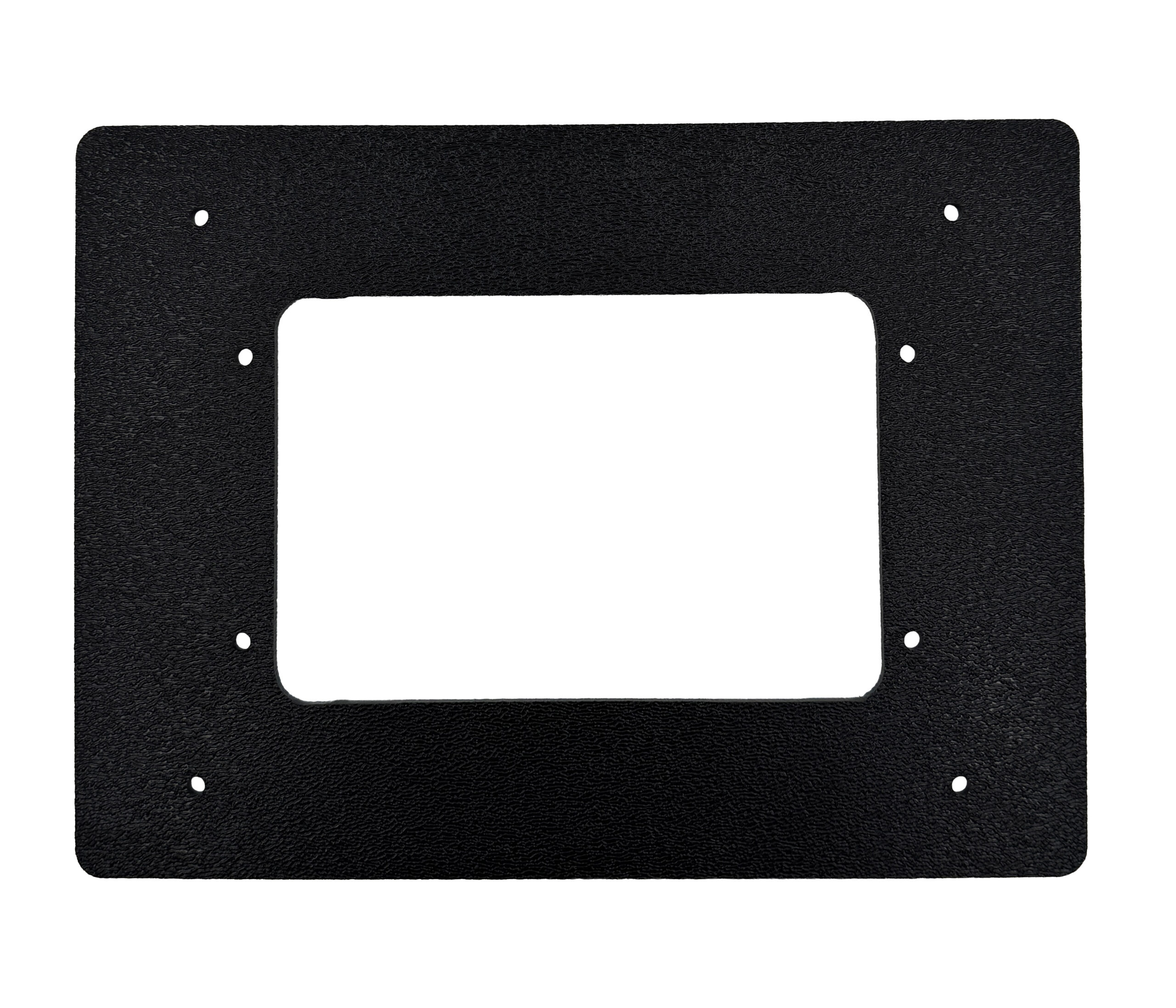 • The flush mount plate measures 8.0 inches by 6.0 inches and is 0.125 inches think and made from black textured ABS plastic
